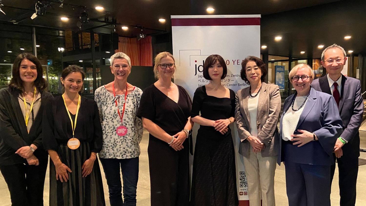 Zum Ausklang lud das Japanisch-Deutsche Zentrum Berlin (JDZB) zu einem Empfang ein, bei dem auch I.E. Frau Mitsuko Shino, Botschafterin von Japan, sowie I.E. Frau Dr. Ana Polak Petrič, Botschafterin von Slowenien und ehemalige Botschafterin in Japan, anwesend waren. JDZB-Generalsekretärin Dr. Julia Münch hieß die Gäste feierlich willkommen, bevor am Ende eines langen Abends auch Mieko Kawakami dazustieß und sich in entspannter Atmosphäre unter die Anwesenden mischte.