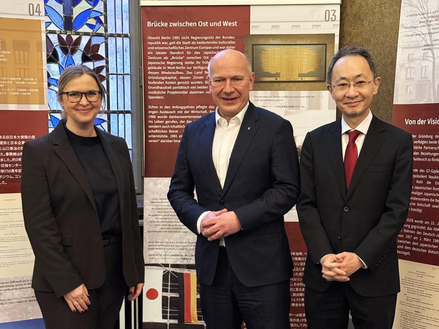 Bereits in die Gründung des Japanisch-Deutschen Zentrums Berlin 1985 war der Berliner Senat maßgeblich involviert: Er stiftete das Gründungskapital, leistete von Beginn an einen paritätischen Beitrag von deutscher Seite und unterstützt, gemeinsam mit den weiteren Trägern, dem Auswärtigen Amt und dem Außenministerium von Japan, unsere Stiftung auf herausragende Art und Weise. Nachdem die Verantwortung für das Japanisch-Deutsche Zentrum Berlin auf Seiten des Landes Berlin 40 Jahre lang bei der Senatsverwaltung für Wissenschaft, Gesundheit und Pflege lag, ging die Zuständigkeit nun zum Jahresbeginn auf die Senatskanzlei über.