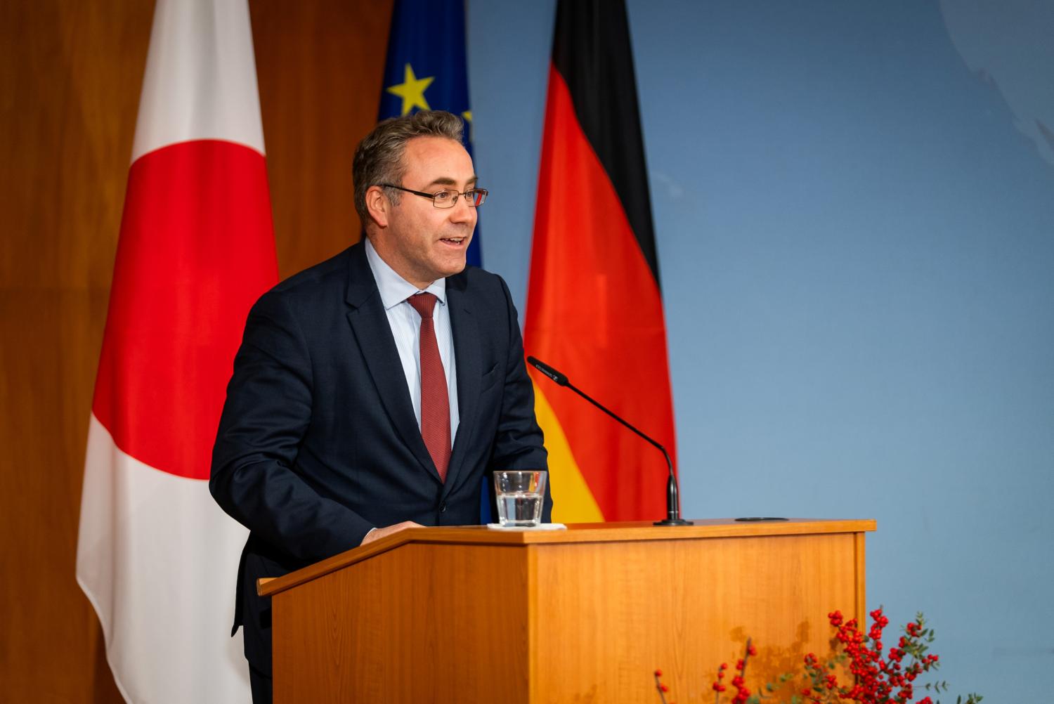Bild 2: Staatssekretär Florian Hauer bei einer Jubiläumsfeier des JDZB im Dezember 2025 im Auswärtigen Amt. | ©JDZB/GRAND VISIONS