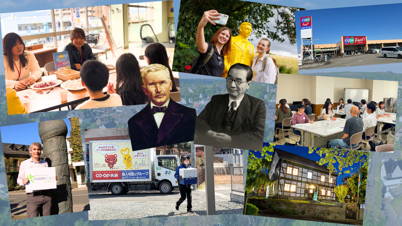 Zusammen mit der Verbandsgemeinde Hamm (Sieg) in Rheinland-Pfalz als Geburtsort von Friedrich Wilhelm Raiffeisen (1818 – 1888) und der Genossenschaft Co-op Kobe in der Präfektur Hyogo, die 1921 als erste Konsumgenossenschaft Japans von Toyohiko Kagawa (1888 – 1960) gegründet wurde, wird der Bogen von den visionären Ideen und dem historischen Erbe dieser beiden bedeutenden und eng mit dem Genossenschaftsgedanken verknüpften Sozialreformer hin zu der Lebenssituation von jungen Menschen in Japan und Deutschland geschlagen.