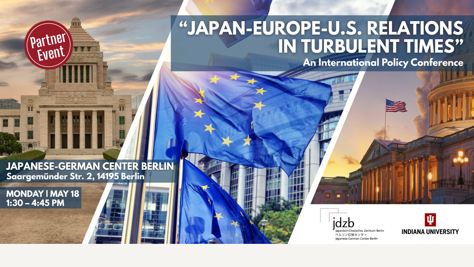 The event is organized by Indiana University, 21st Century Japan Politics and Society Initiative, and is supported by IU Global, IU’s Europe Gateway in Berlin, as well as the JDZB.